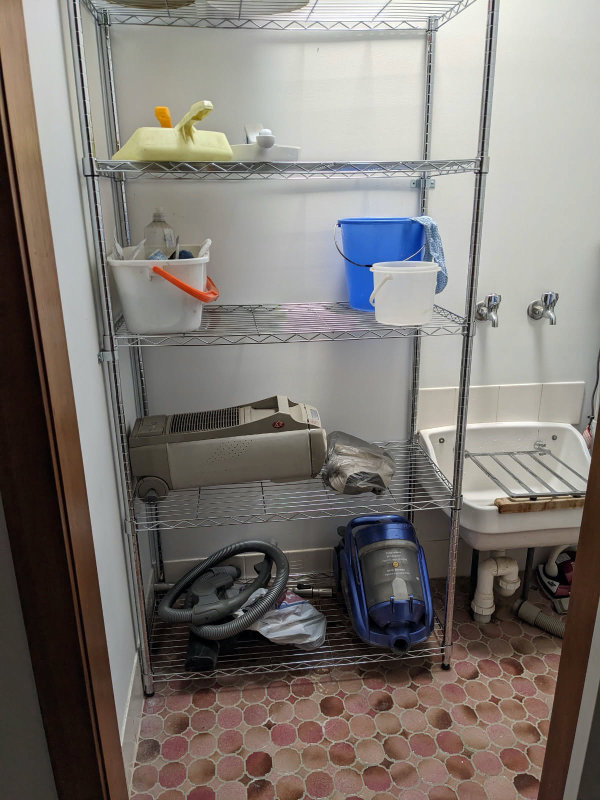 As written in the December meeting minutes, Rhonda has bought a 5-shelf rack for the cleaning room, assembled by Heather’s husband, so the room can be kept tidy. What a huge difference!!