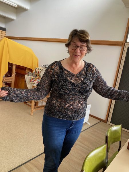 Show & Tell was spread out over the last two months as some finished pieces were destined for gift giving and not going to be available on meeting days, or the maker was going to be away. Fortunately we were able to get a sneak preview, some modelled, and pics.